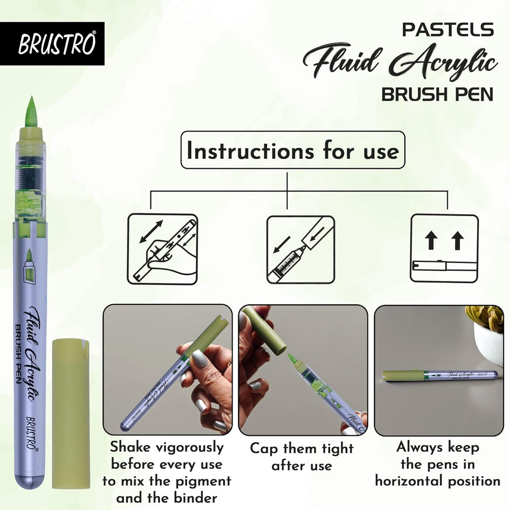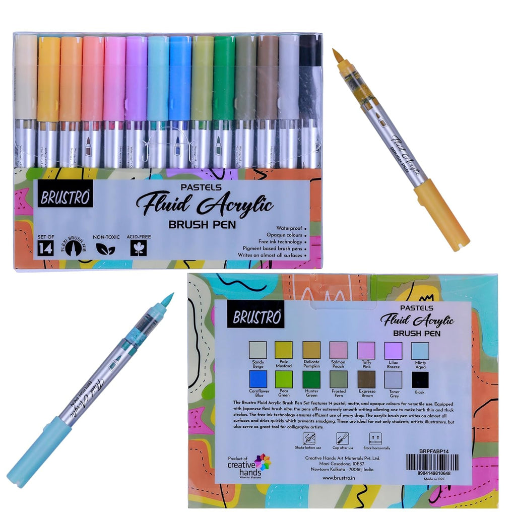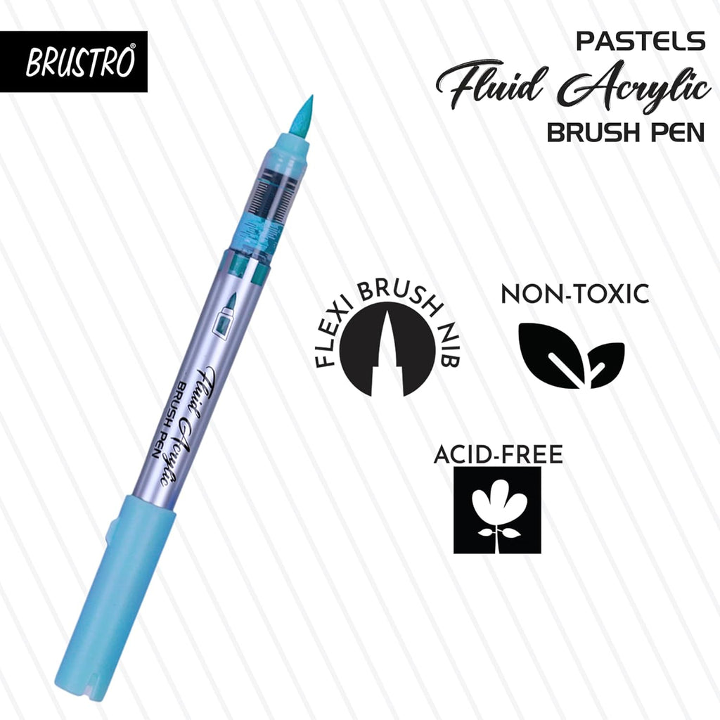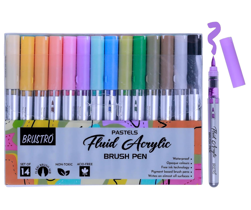 - BRUSTRO Fluid Acrylic Brush Pen | Set of 14 Pastel Shades